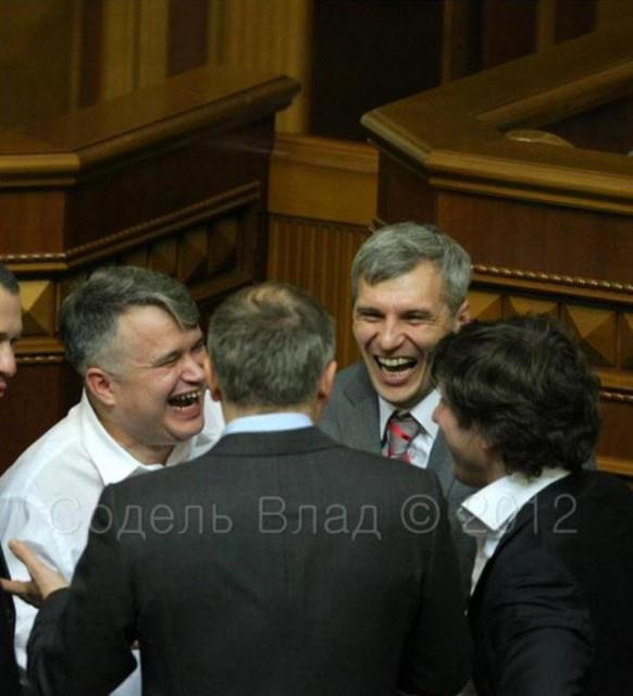 Ліворуч свободівець Мохник, поруч з ним - Кошулинський, віце-спікер від "Свободи", спиною - Шуфрич, праворуч - Тедеєв.